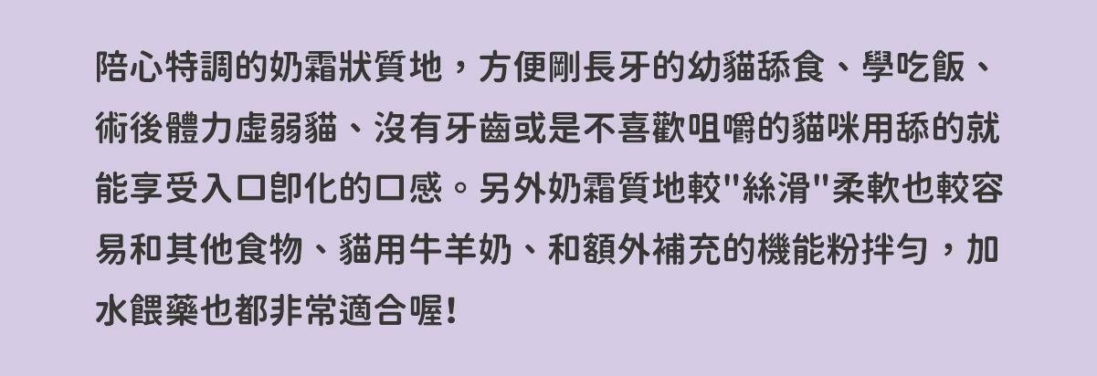 ✔ 陪心特調奶霜質地,方便幼貓舔食