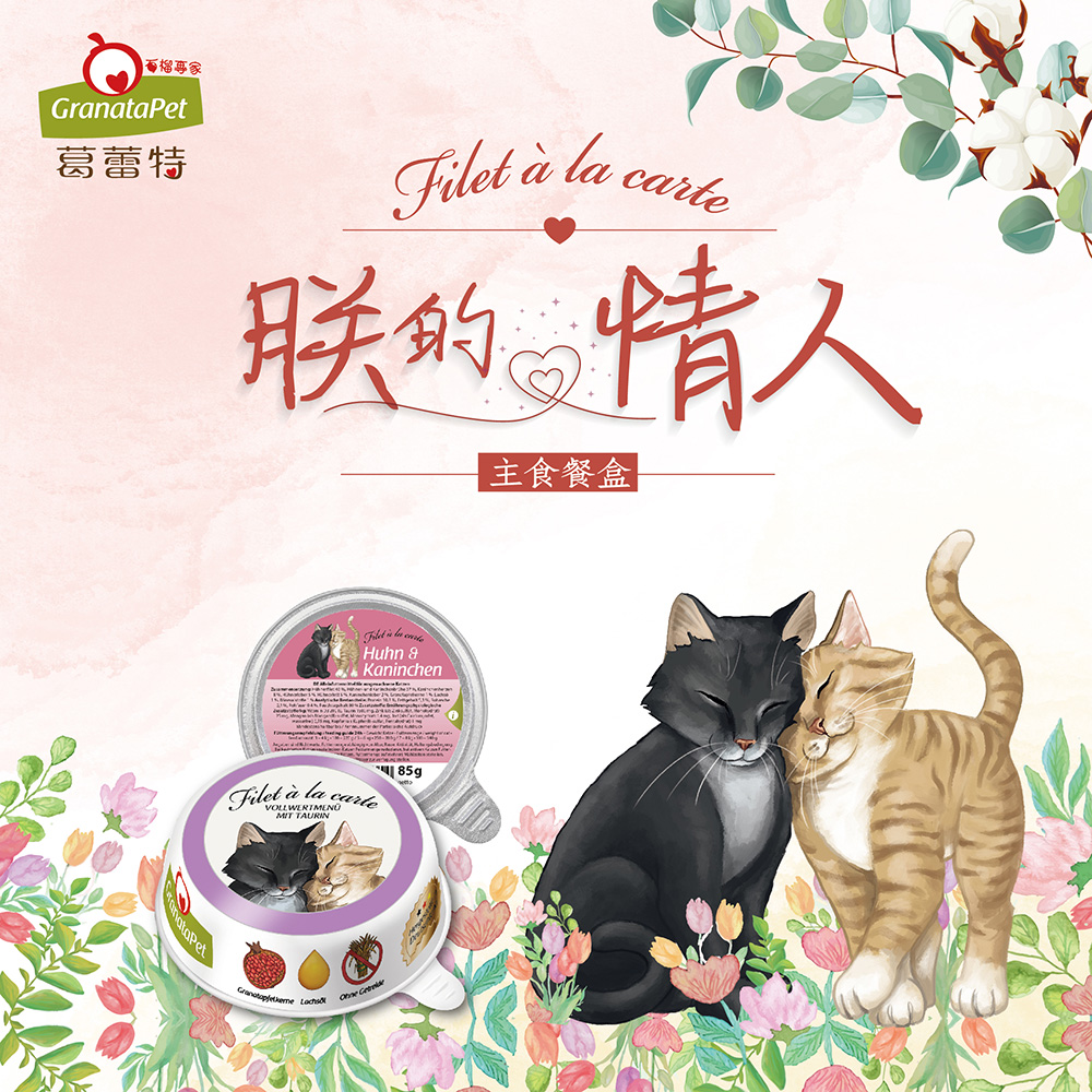 與愛貓們的味蕾約會,讓他們感受無限的愛與呵護!GranataPet 朕的情人主食貓餐盒1號,含40%雞肉菲力為優質蛋白質提供來源,搭配鴨與雞肉湯、內臟食材溫火燉煮,提供豐富不飽和脂肪酸與維生素,完整保留食材原型。
