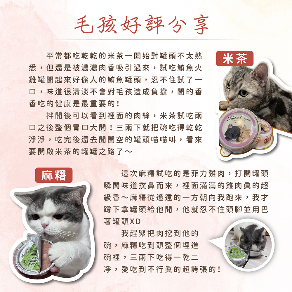 選用頂級菲力食材,美味多汁濃醇鮮肉、天然無穀、無膠、低磷高品質主食餐。