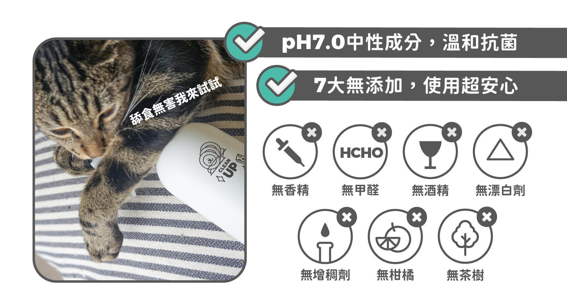 ‧ 7.0溫和中性,不刺激毛孩皮毛