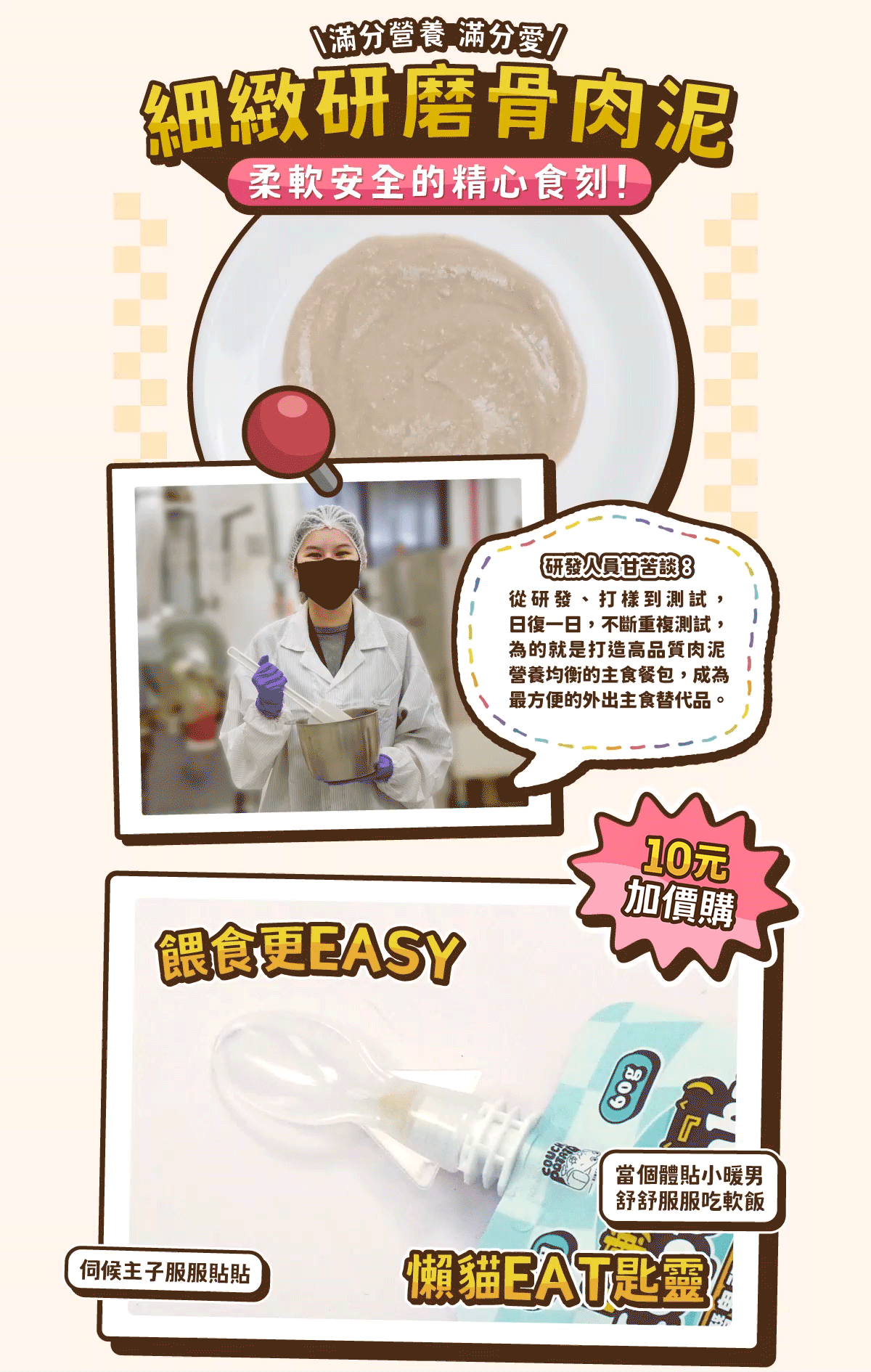 綿密骨肉泥配搭微肉絲,口感一級棒!8:1:1黃金肉、骨、內臟比例,全面滿足貓貓營養需要!