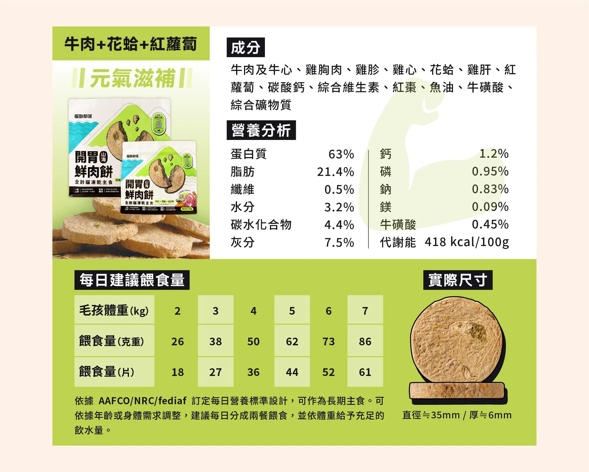 貓用|凍乾主食|開胃山海鮮肉餅-牛肉花蛤紅蘿蔔 (400g)