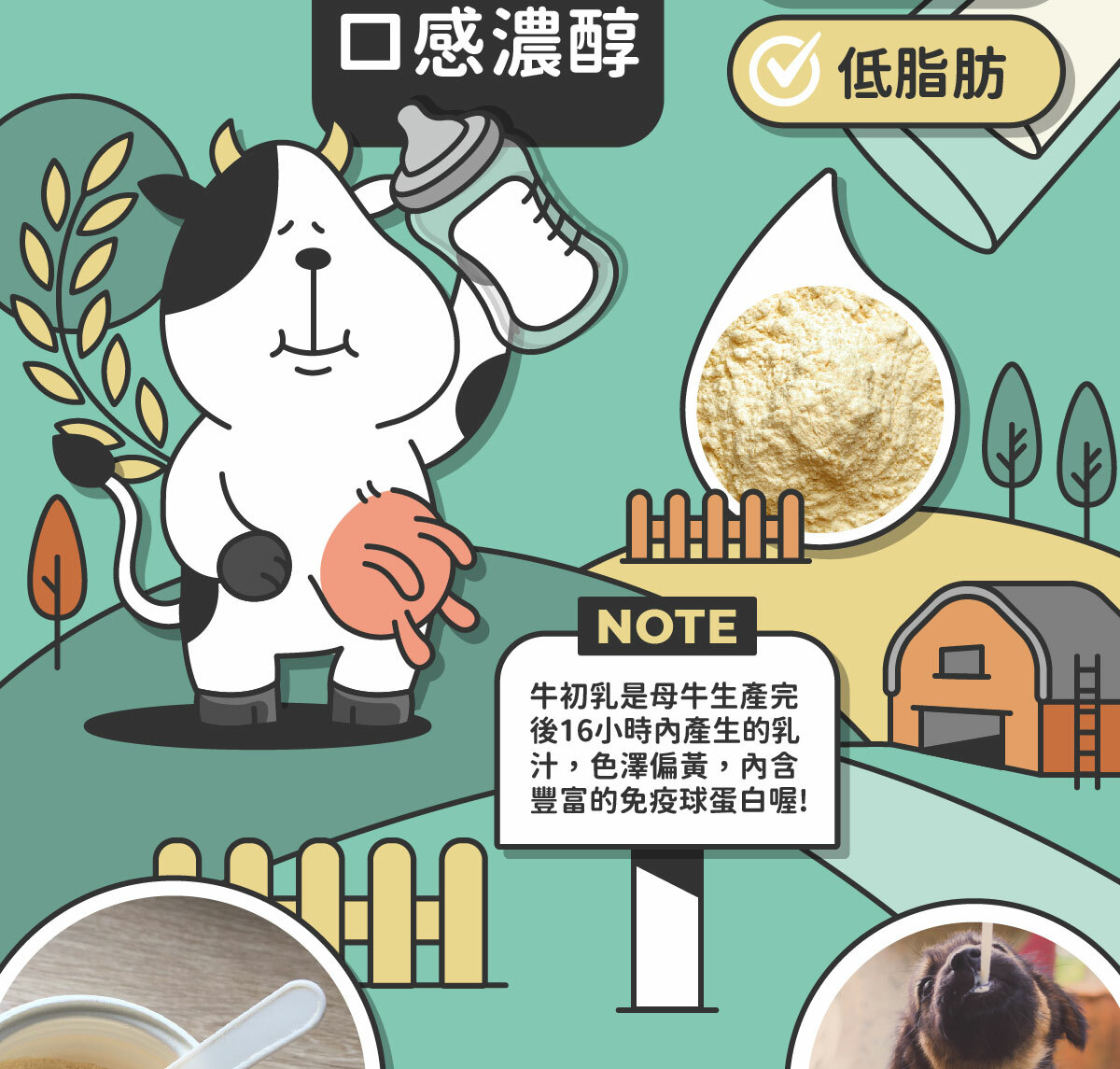 牛初乳是母牛「生產完後16小時內」產生的乳汁,色澤偏黃,內含豐富的免疫球蛋白與高純度營養